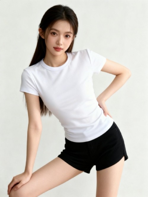 S101#220克女士圆领T恤高弹力91棉9氨纶