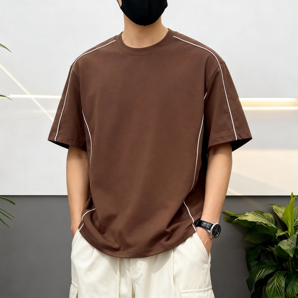S28#260克凉感撞色结构款拼接宽松版T恤