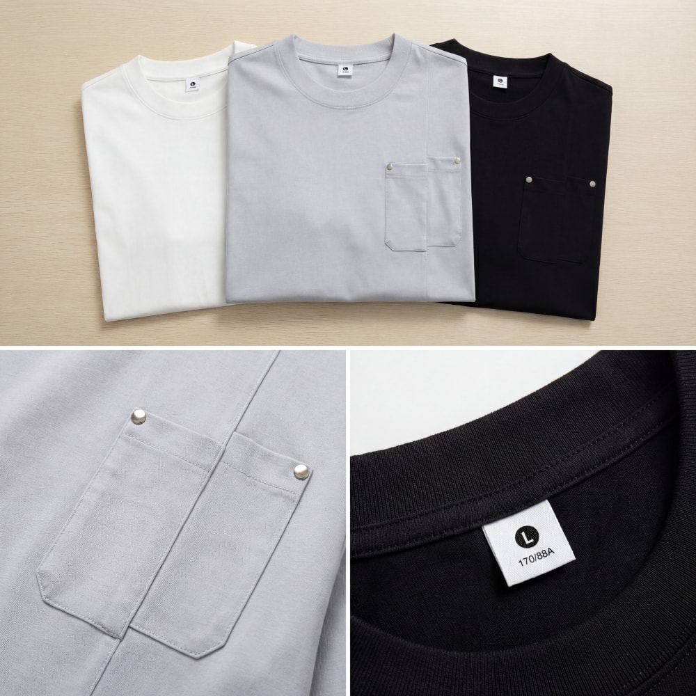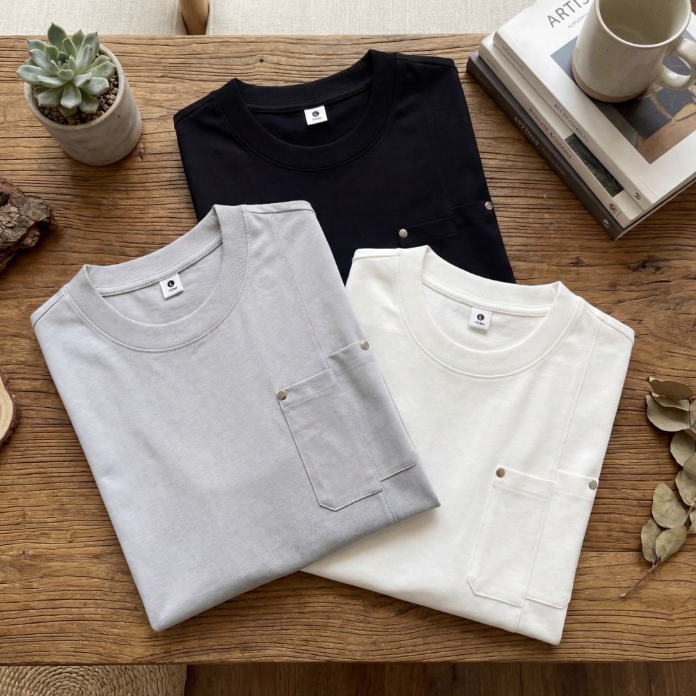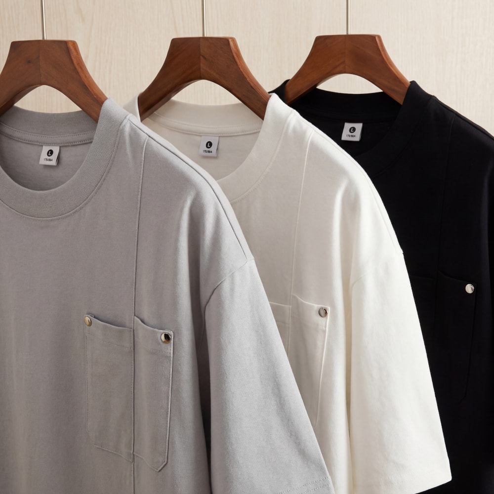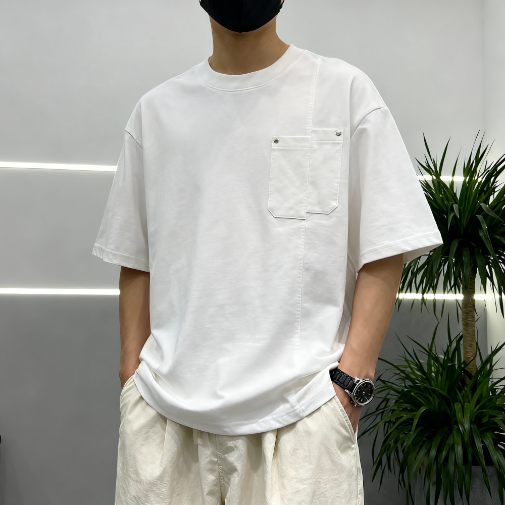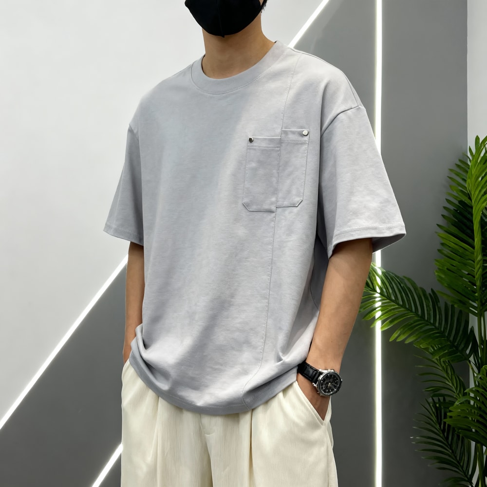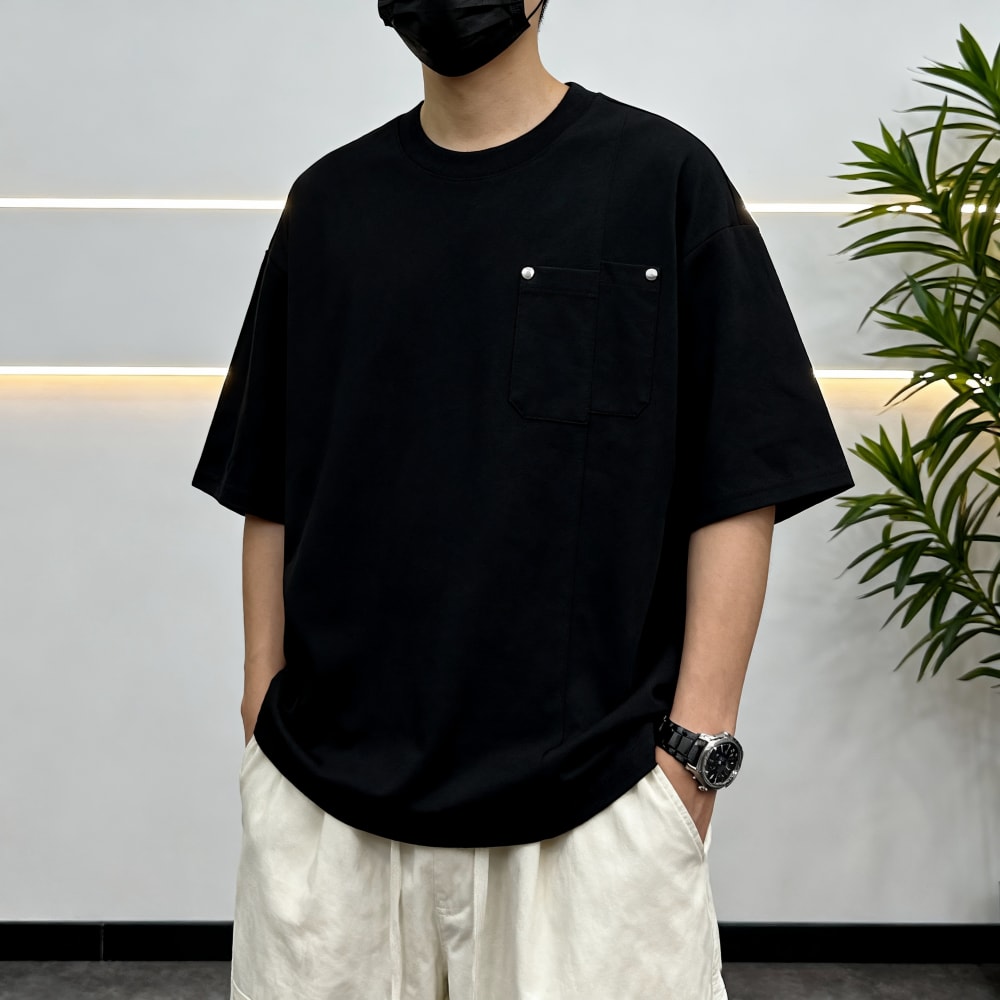 S7702#240克索罗娜高弹凉感潮牌宽松结构款口袋T恤