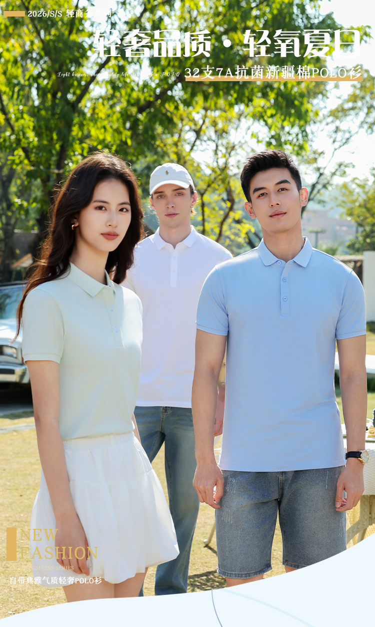3606#210克32支新疆棉纯色二级领polo衫短袖