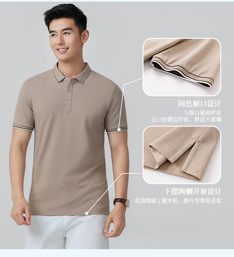 3605#210克32支新疆棉撞色二级领polo衫短袖