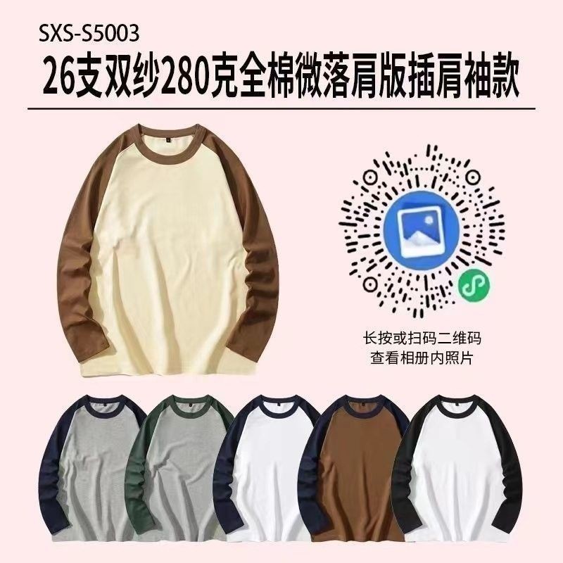 S5003-26支双纱280克全棉微落肩版插肩袖款