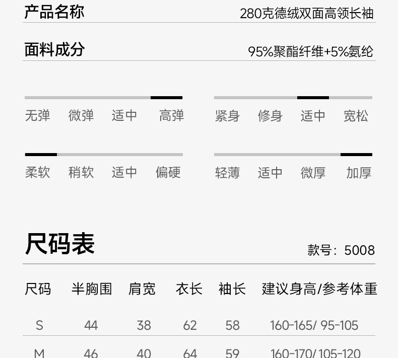S5008/280克德绒双面高领长袖
