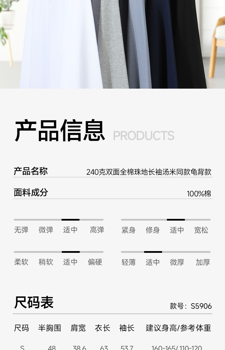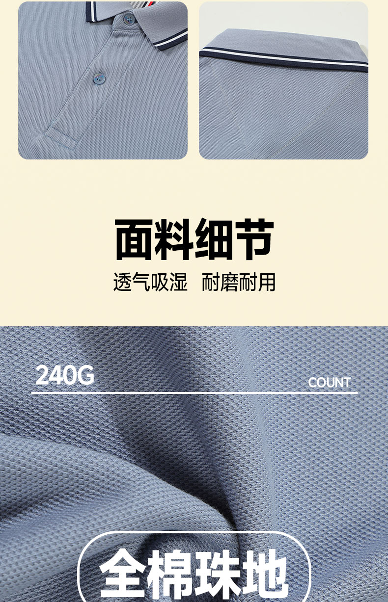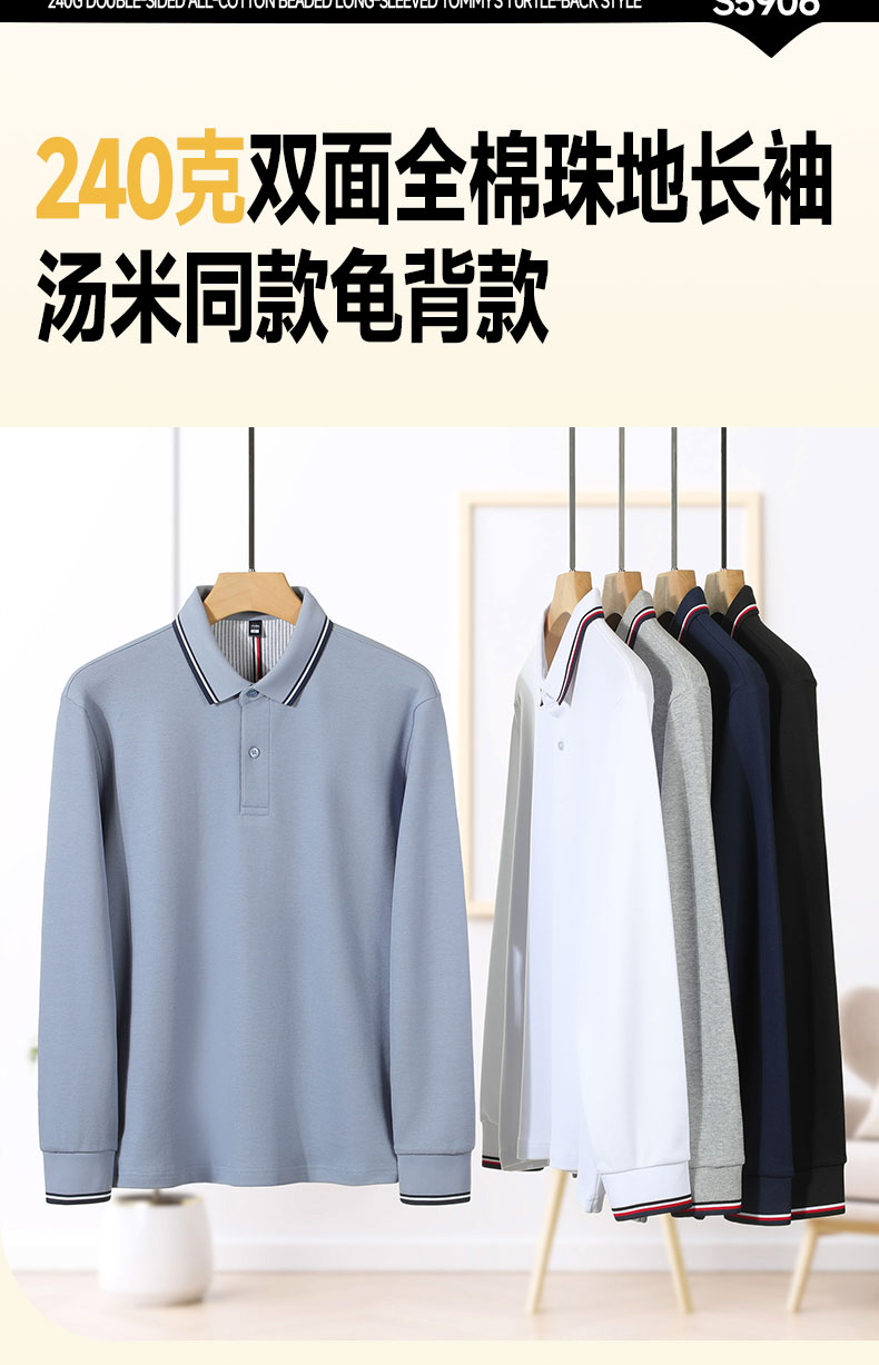 S5906#240克双面全棉珠地长袖汤米同款龟背款