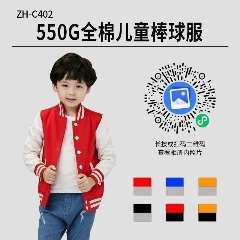 ZH-C402/550克全棉儿童棒球服