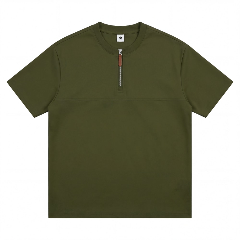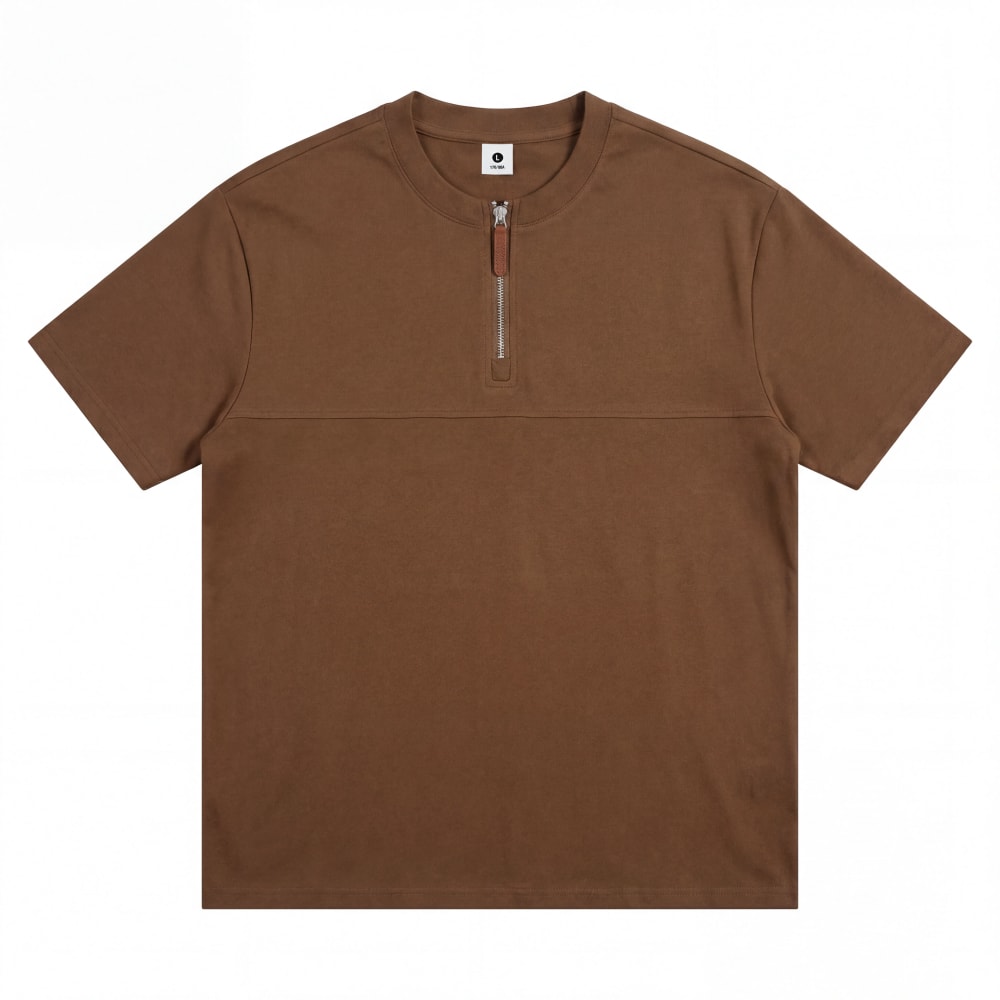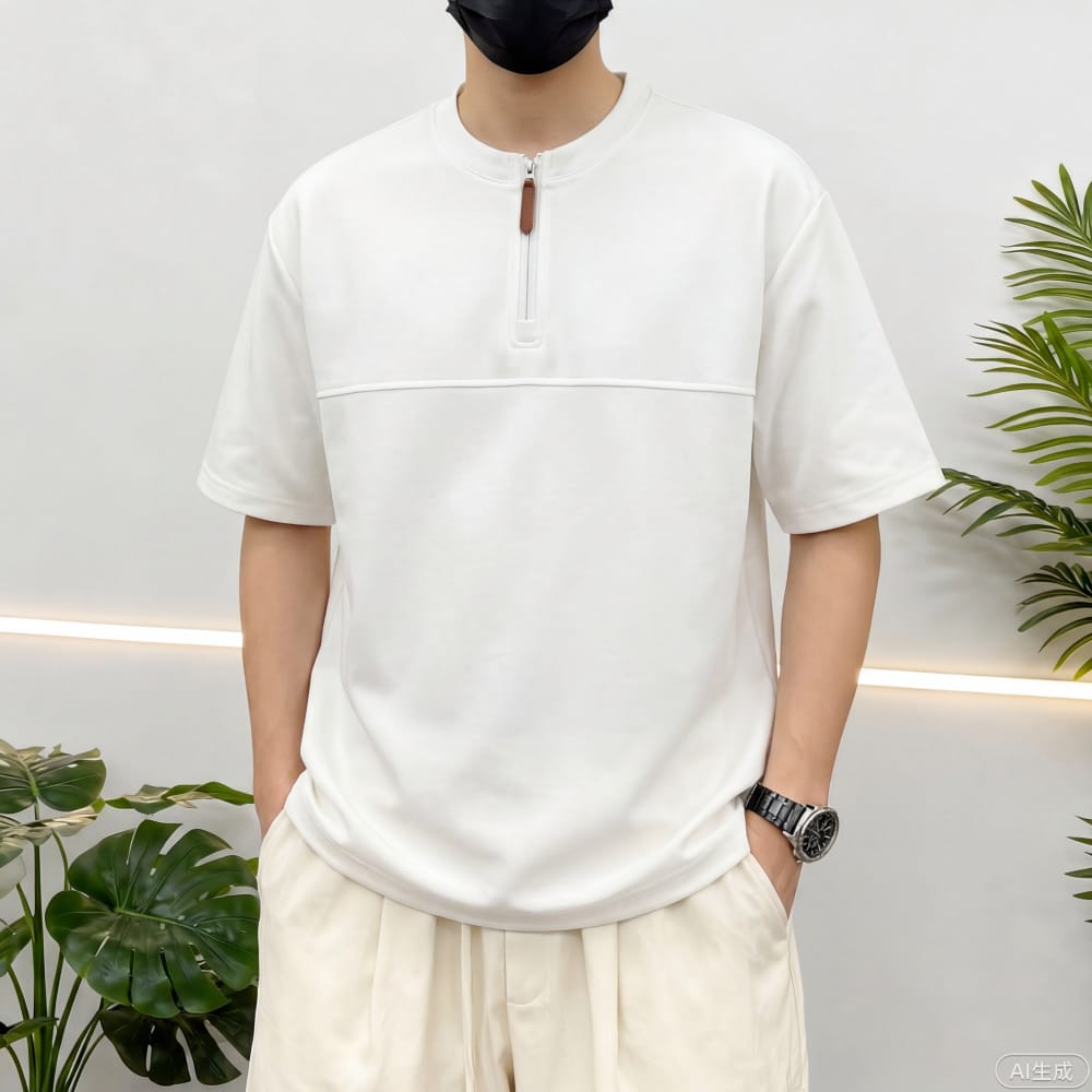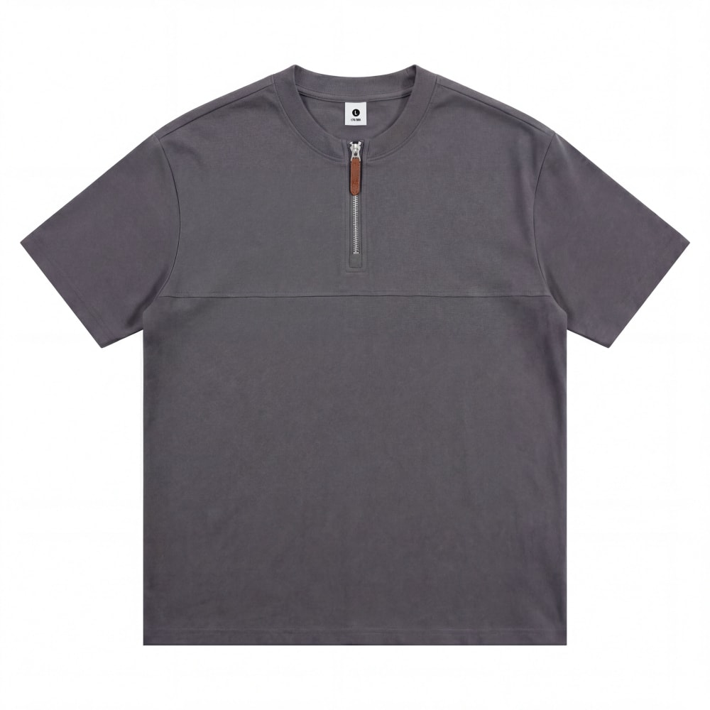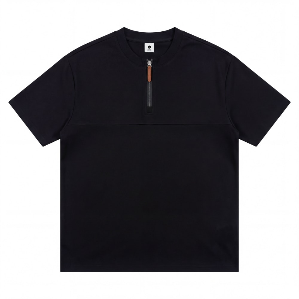 S7719#230克罗马丝光双面布潮牌半拉链宽松T恤